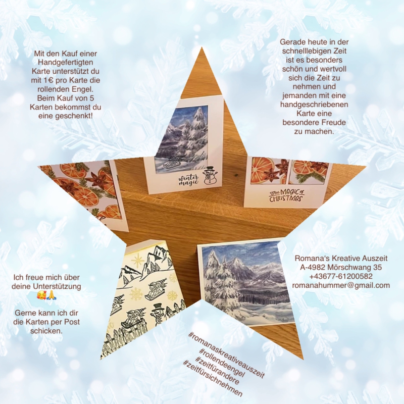 Mit den Kauf einer Handgefertigten Karte(€3,90) unterstützt du mit 1€ pro Karte die rollenden Engel. Beim Kauf von 5 Karten bekommst du eine geschenkt.