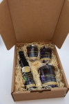 Große Geschenkschacktel mit einer Schwarzen Nuss, einer Pfefferkirsche, einer Essigzwetschke, einer Gewürzbirne, einem Kürbis süß/sauer, einem Gartengemüse und 2 Chutneys deiner Wahl