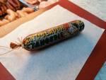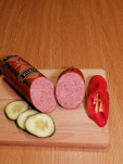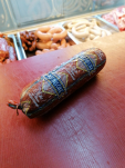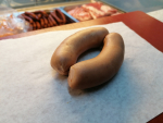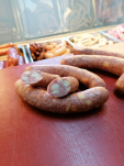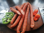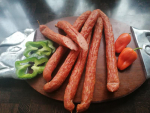 Knacker mit Chili und Kräutern aus dem eigenen Garten sowie hofeigenem Schweinefleisch im Naturdarm
