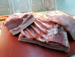 Rückenspeck vom Wollschwein mit Meersalz eingesurt!