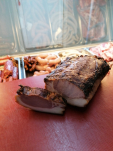 Geräuchertes vom hofeigenen Wollschwein fein geschnitten