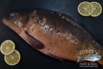Frische Karpfenseitenteile. Die Karpfen werden ausgenommen, gereinigt, filetiert und geschröpft.